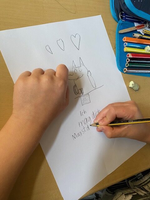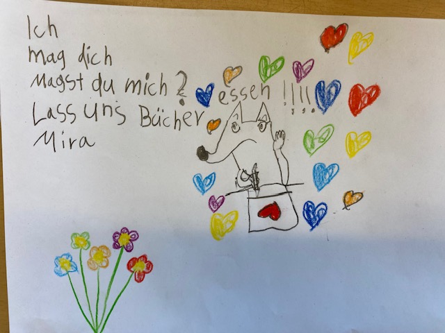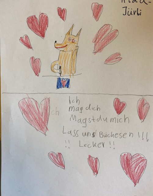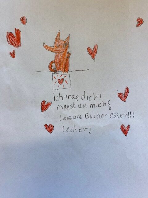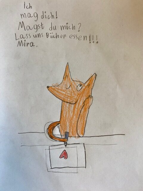 Nach der Lesung durften wir bei einem Ruck-Zuck-Zeichenkurs mitmachen! Wir haben gemeinsam den verliebten Herrn Fuchs gemalt und sogar ein eigenes Elfchen für ihn geschrieben. Das war richtig kreativ und hat uns allen ganz viel Freude gemacht.