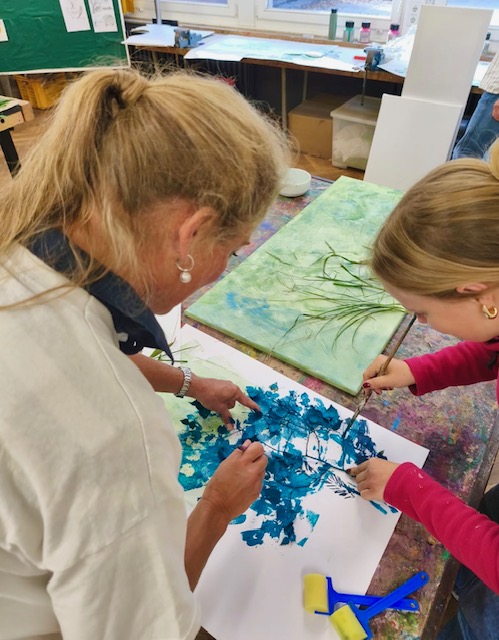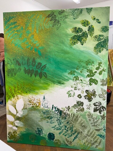 Besonderen Spaß bereitete allen das künstlerische Gestalten beim Bedrucken von Leinwänden mit Naturmotiven. Unter der Anleitung von zwei erfahrenen Kunstkolleginnen entstanden beeindruckende Kunstwerke, die künftig im Lehrerzimmer und in verschiedenen Schulräumen bewundert werden können.