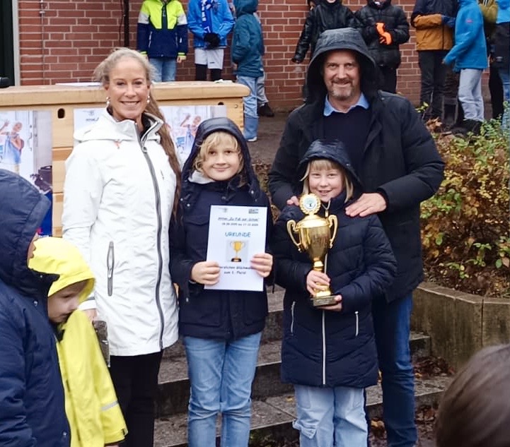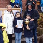 Unser Schulleiter Herr Lechel und Frau von Heyden (im Namen des Schulvereins) übernahmen die feierliche Übergabe der Preise und sorgten für strahlende Gesichter. Pokale gab es für die stolzen Jahrgangsgewinner-Klassen VSK C, 1c, 2c, 3a und 4a.